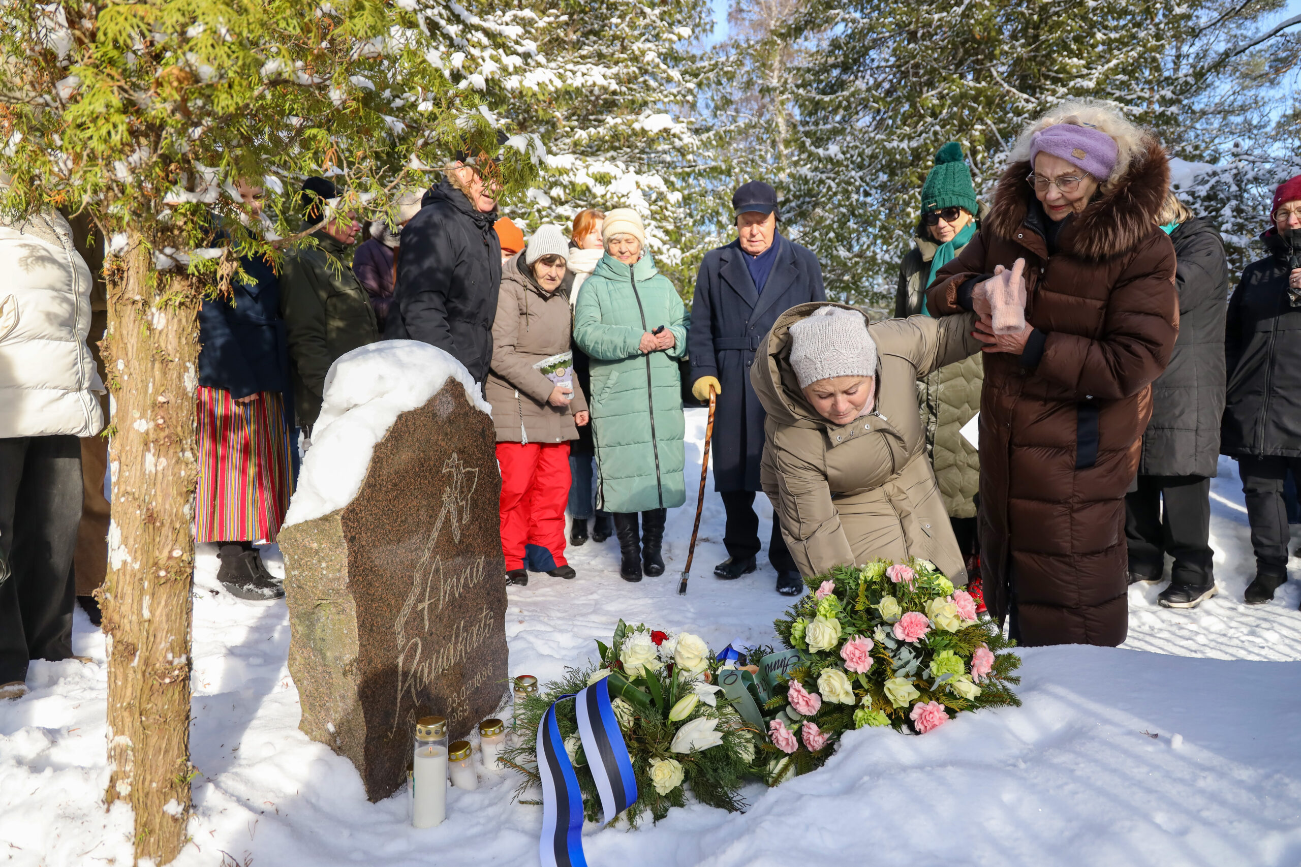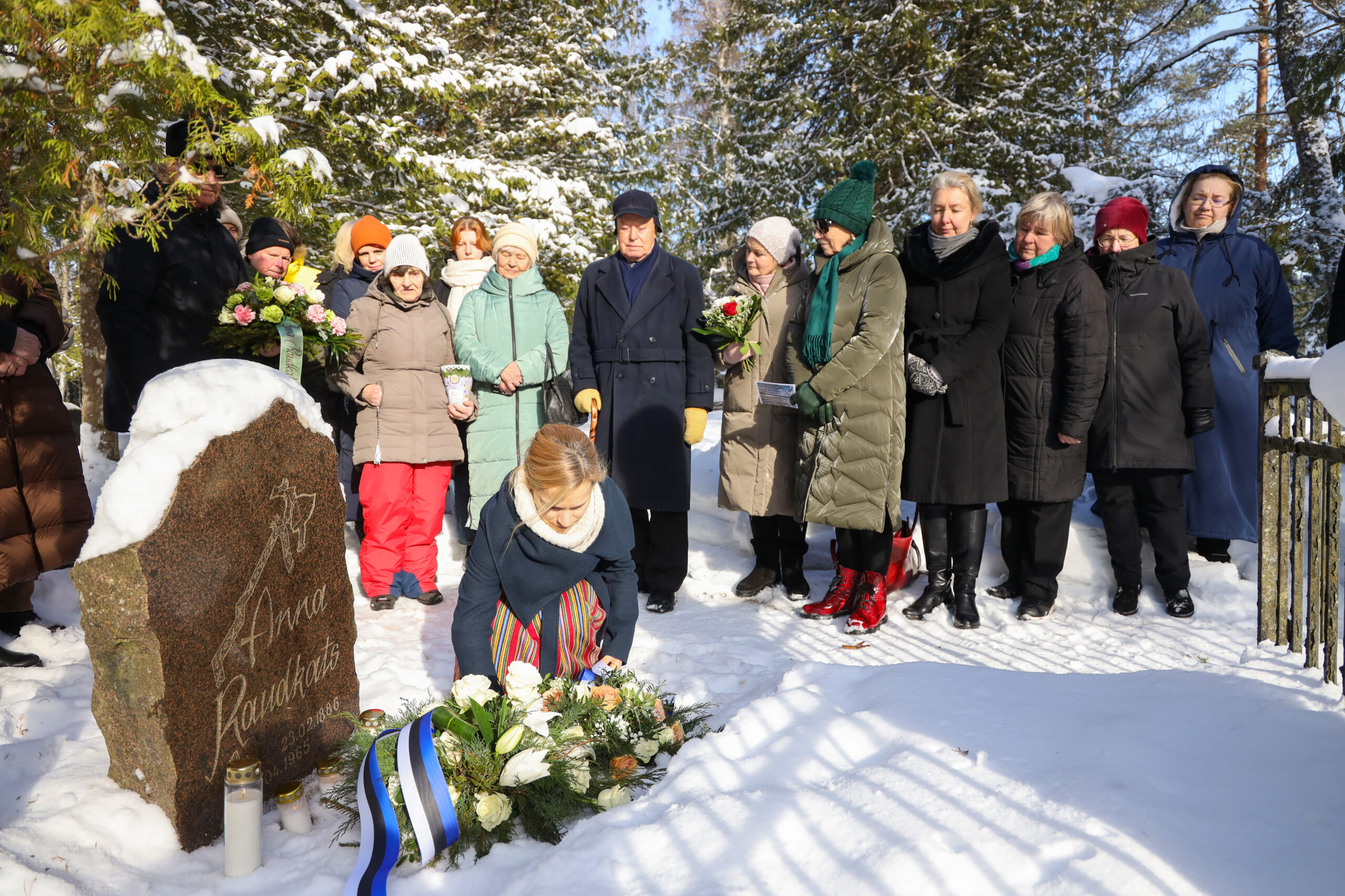 Mälestushetk Anna Raudkatsi puhkepaigal. Rahvatantsuema mälestust austati tema 140. sünniaastapäeval, 23. veebruaril Aegviidu kalmistul.